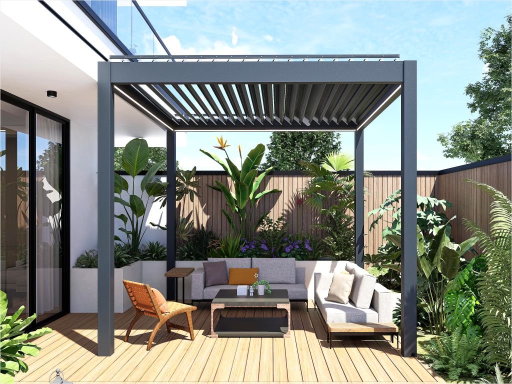 Bioklimatická pergola - AMY 3x3 m, samostatně stojící, elektrické nebo manuální ovládání, antracit