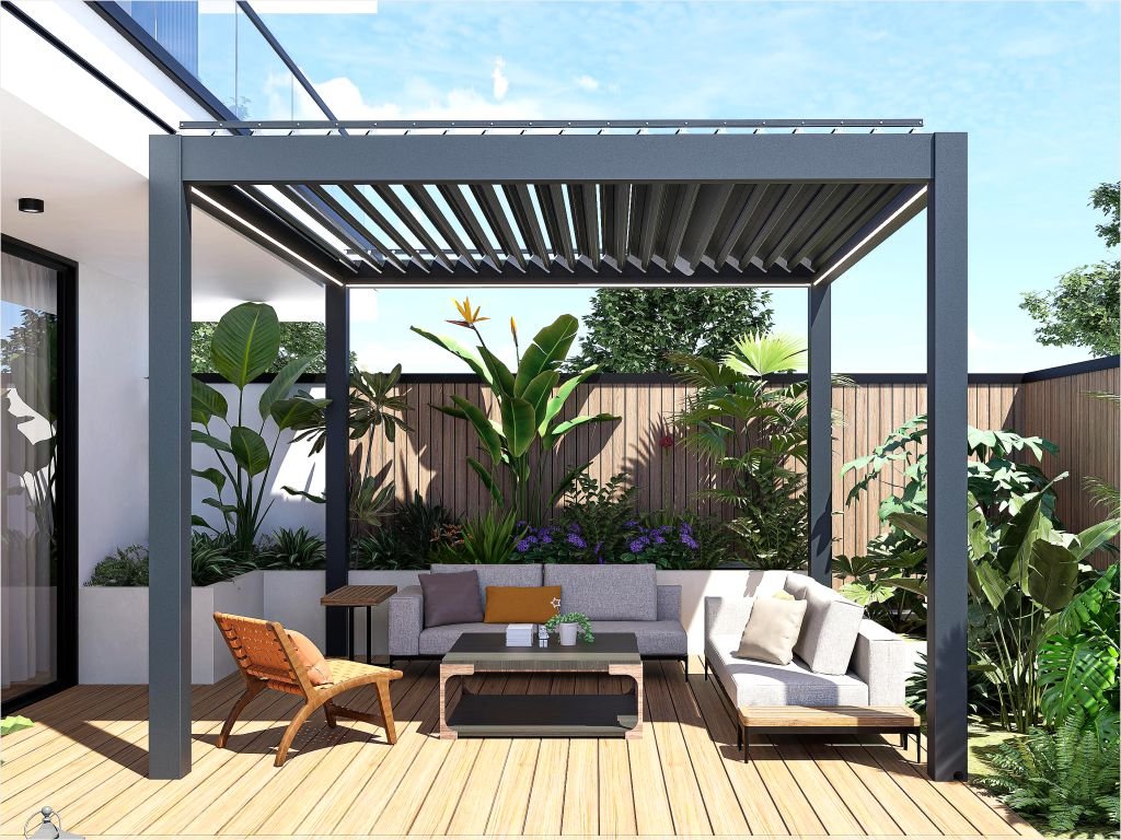 Bioklimatická pergola - AMY 4x3 m, samostatně stojící, elektrické nebo manuální ovládání, antracit