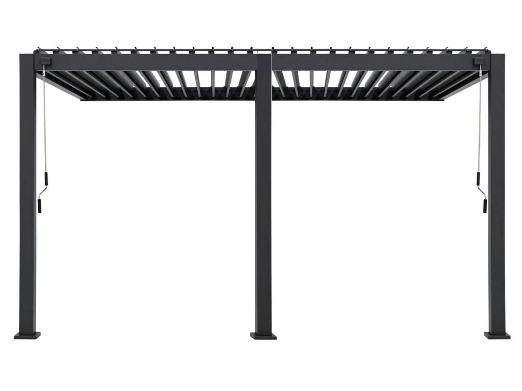 Celá konstrukce pergoly (horní profily, svislé sloupky a lamely) je vyrobena z hliníkových profilů třídy 6063-T5, dolní kotvící patky sloupků jsou z oceli. Jednotlivé díly jsou navzájem spojeny pomocí šroubů a spojovníků. Povrchová úprava je provedena vypalovanou práškovou barvou v šedém odstínu (RAL 7016, antracit).