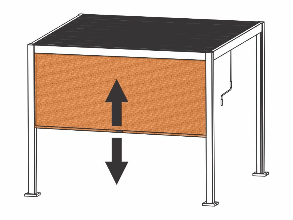 - u samostatně stojících pergol lze roletu použít pro přední, zadní i boční strany,